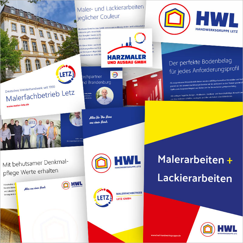 Corporate Design für eine Unternehmensgruppe mit ca. 100 Mitarbeitern aus dem Handwerk. Die Werbemanufaktur gestaltete Unternehmensbroschüren, Logos für Tochterunternehmen, Briefpapiere, Visitenkarten, Werbeplakate, Werbebanner u.v.a.m. Zudem textete sie für Internetauftritte und Offline-Medien.